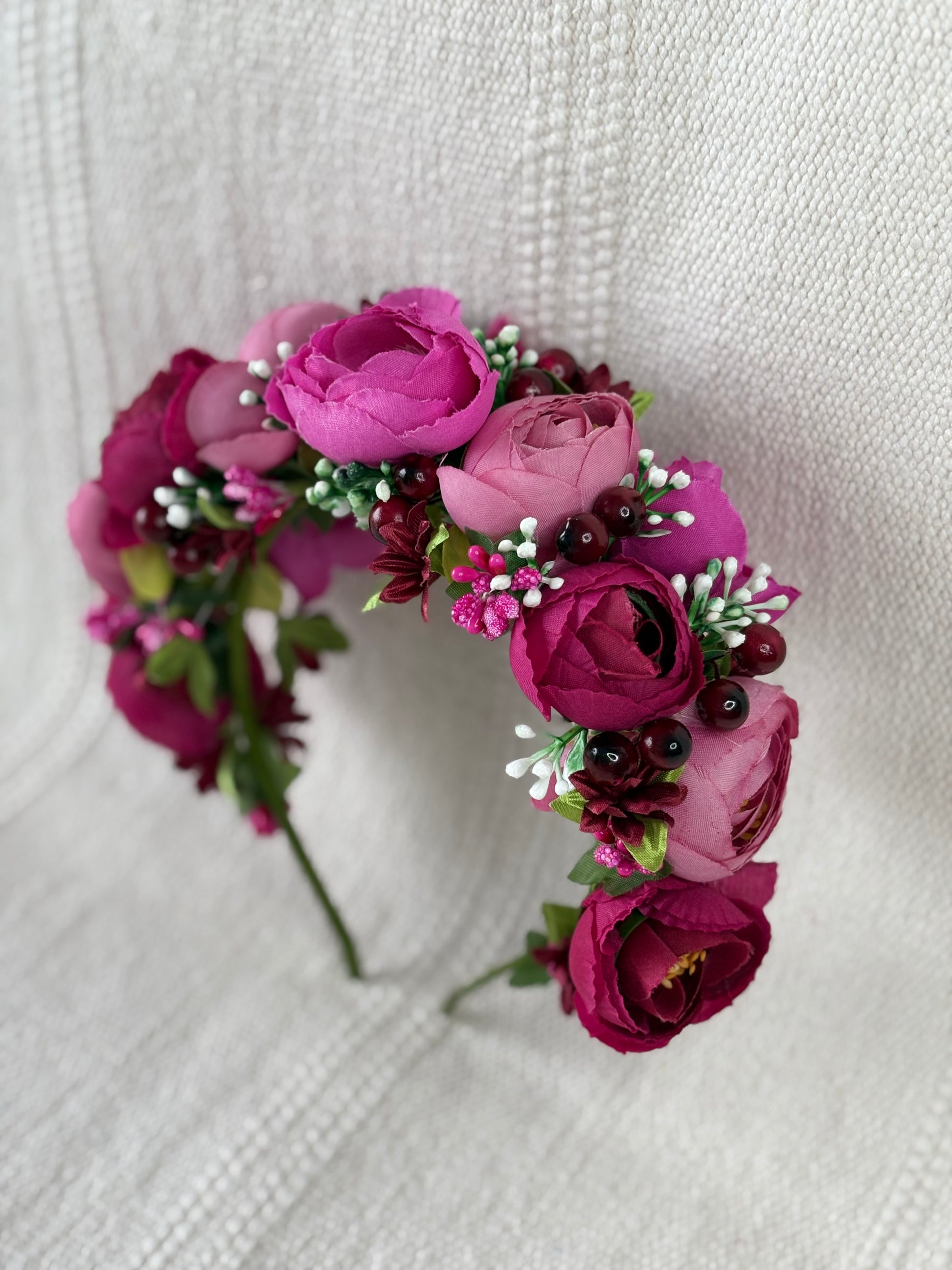 This handmade flower crown perfectly complements any outfit, adding a touch of elegance and romance. Ideal for weddings, photoshoots, or as a stylish everyday accessory. Each flower is crafted with love and attention to detail, making this crown truly unique.