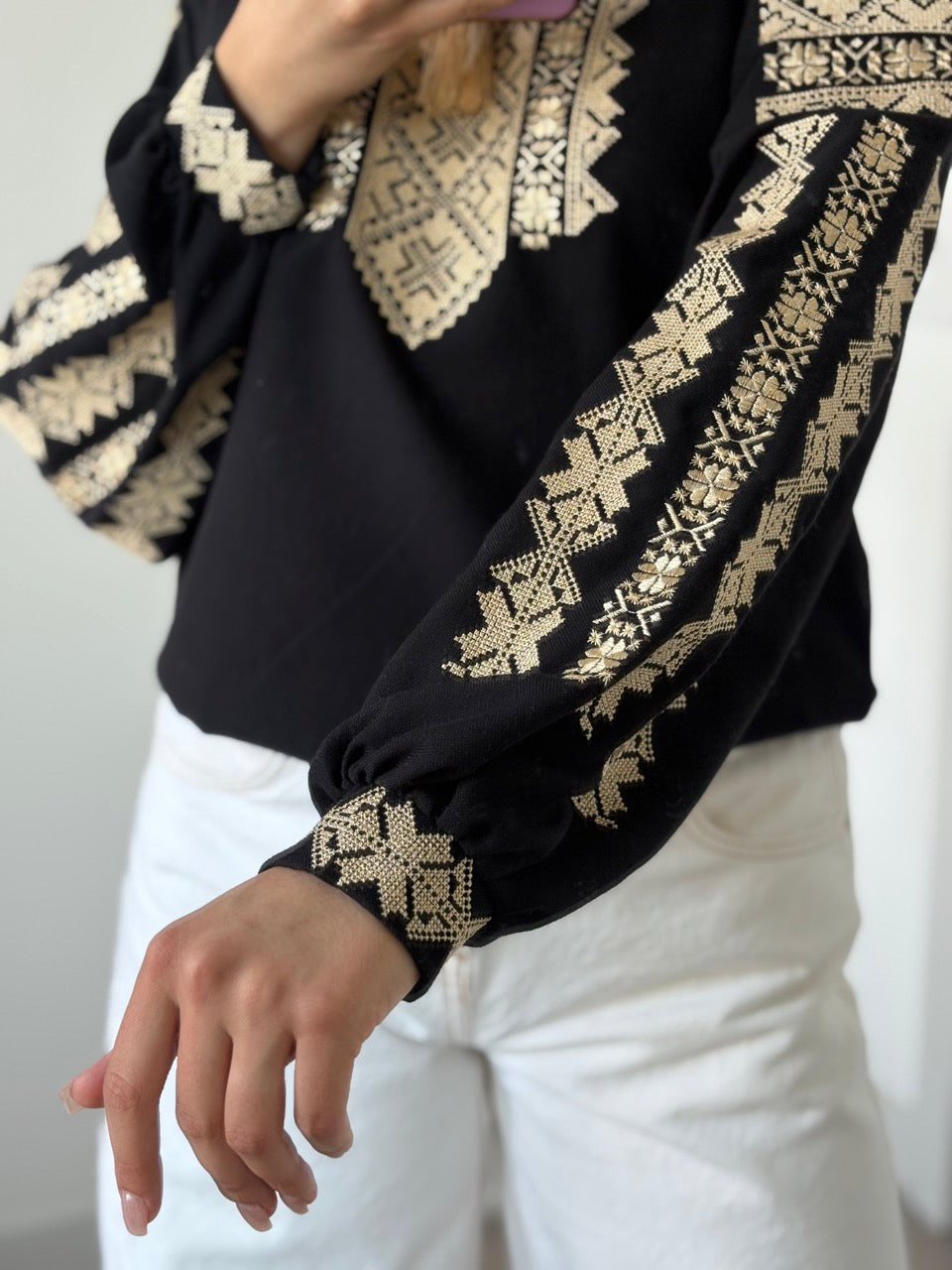 Black Blouse with Golden Embroidery