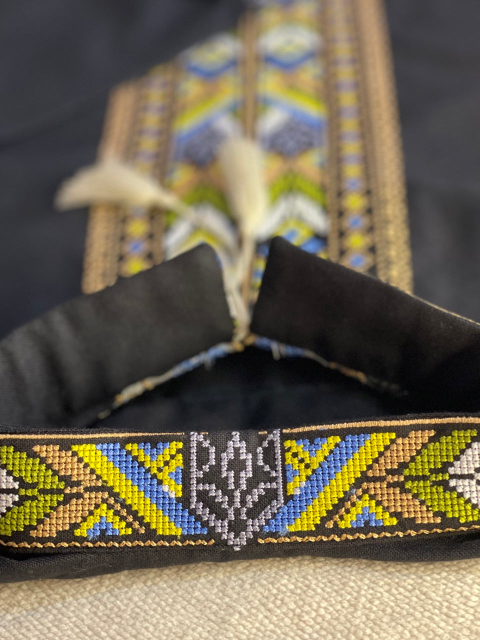 Black Men's Vyshyvanka Embroidered with Ukrainian Symbol and Flag