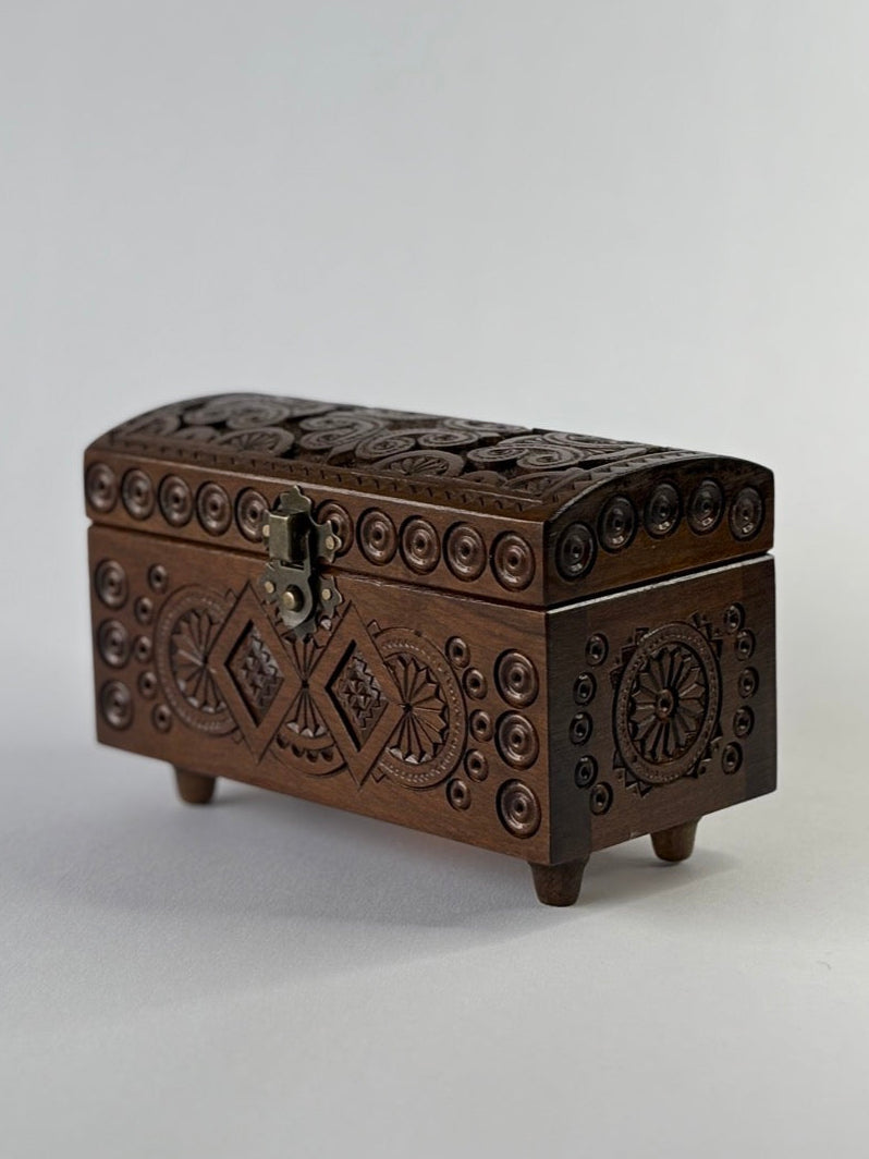 Handmade Dark Large Rectangular Wooden Box with Carving - Pattern 1