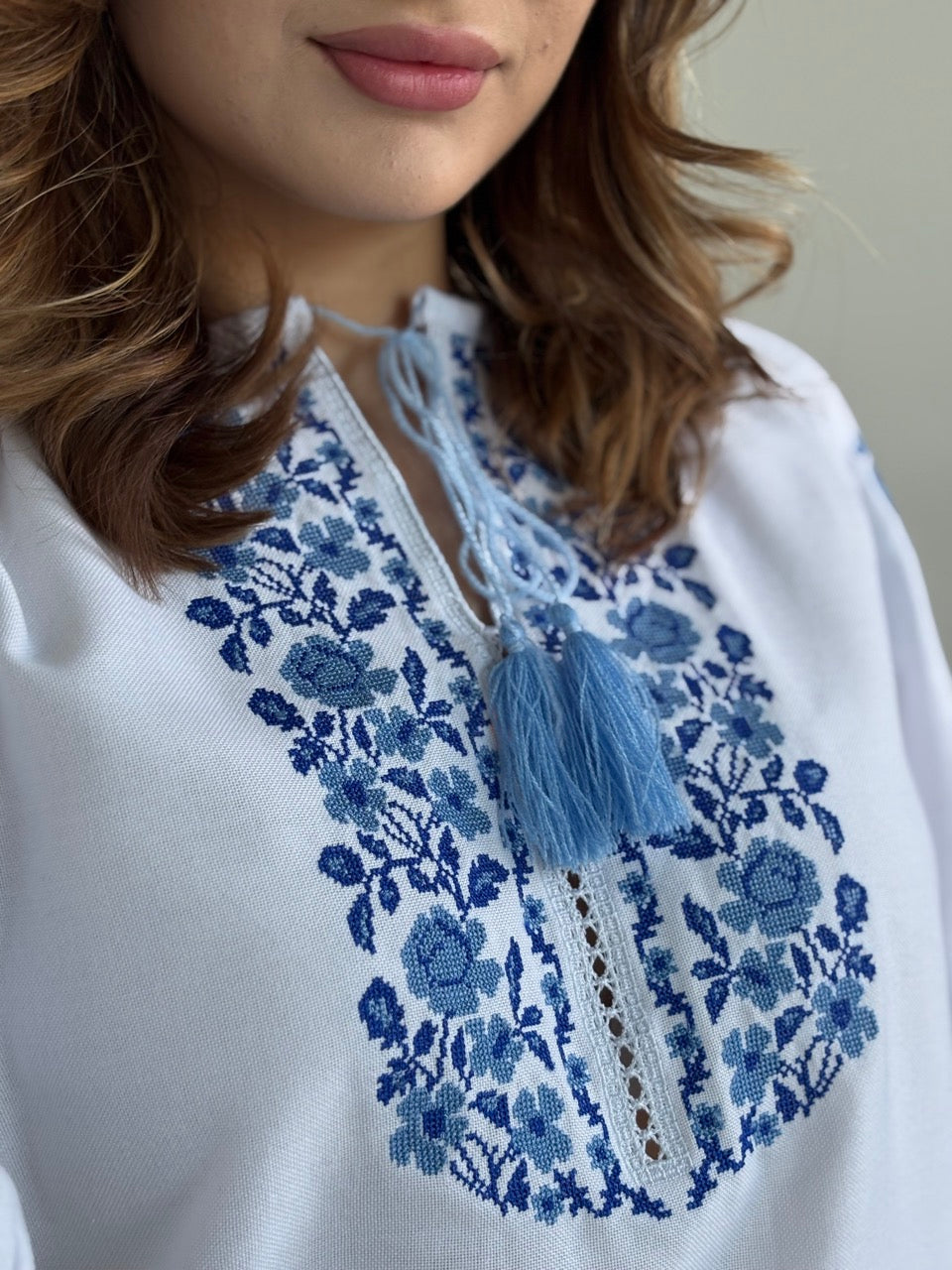 The White Blouse with Blue Flowers and Richelieu