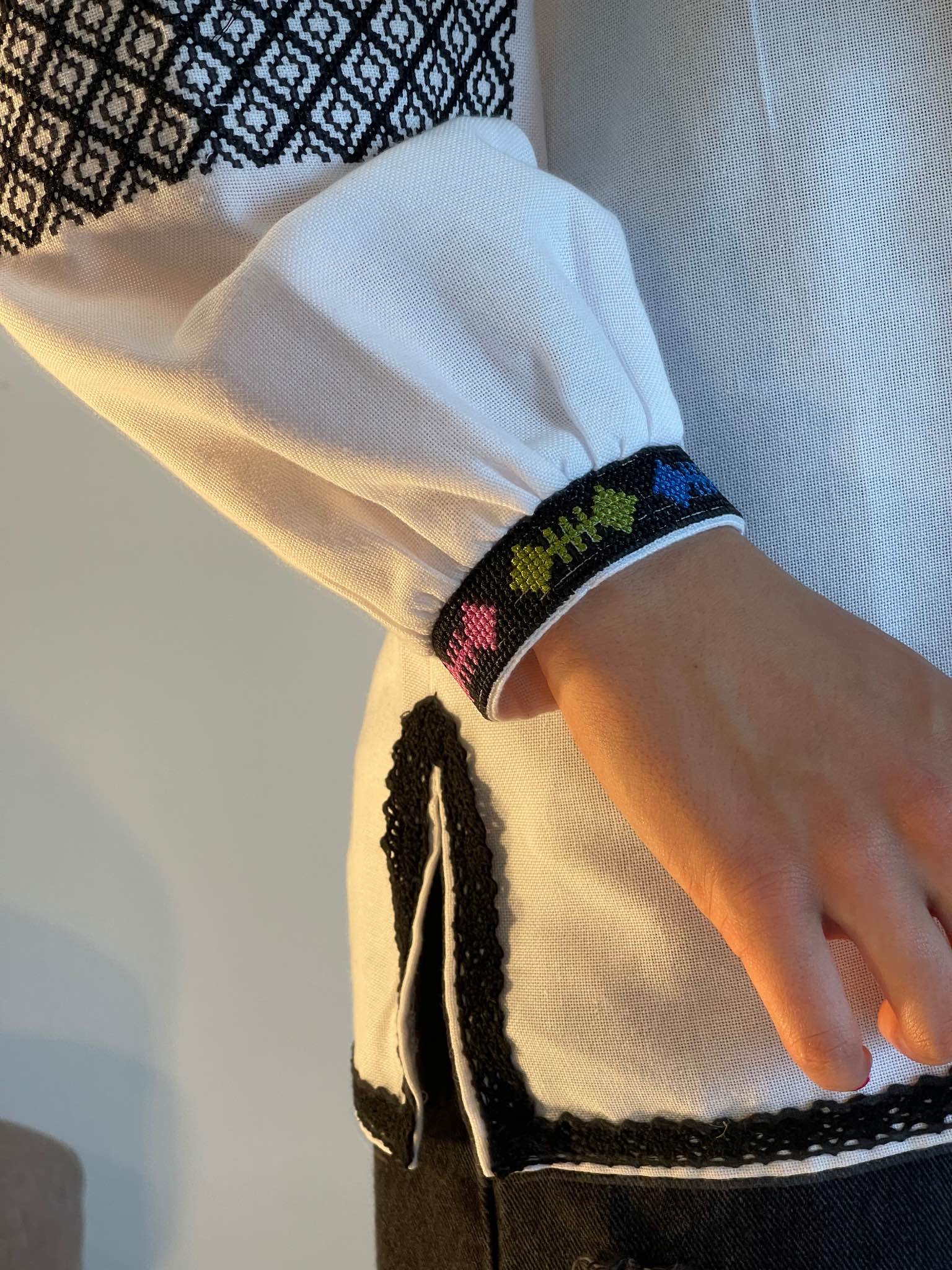 The White Women's Blouse with Geometric Embroidery