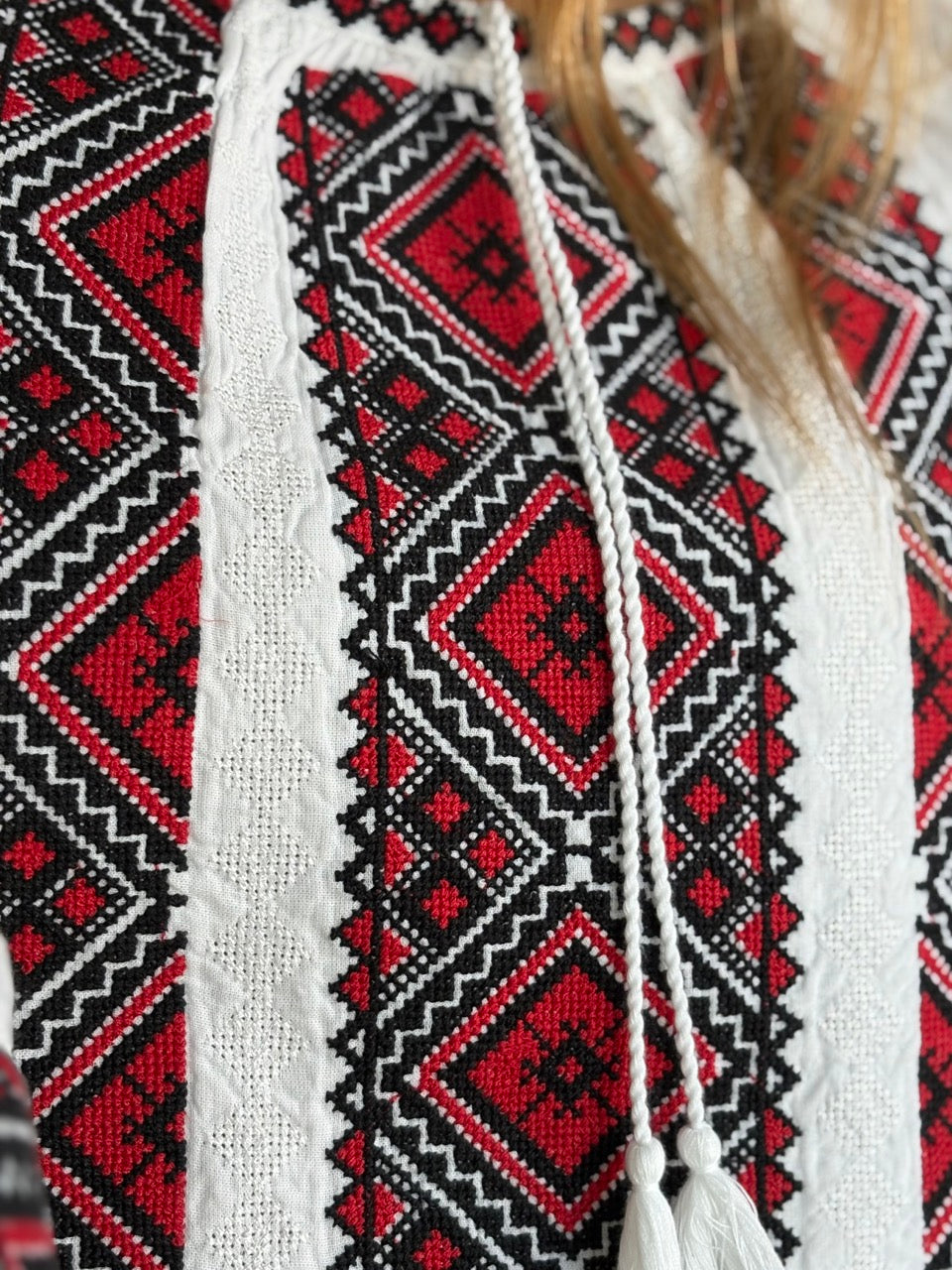 White Batiste Long Sleeve Women's Blouse with Red&Black Embroidery - Pattern 2