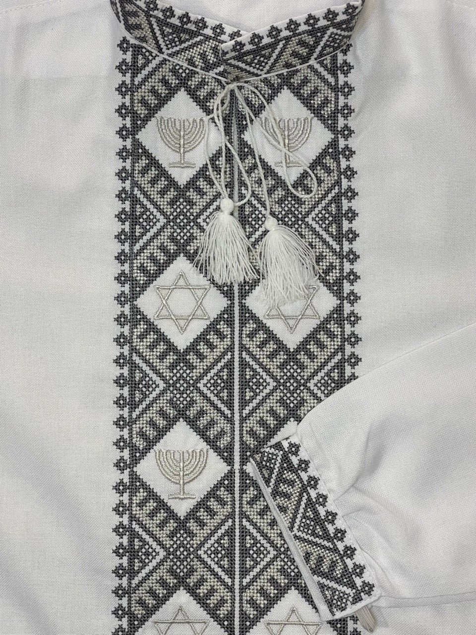 White Men's Embroidered Shirt with Jewish Symbols