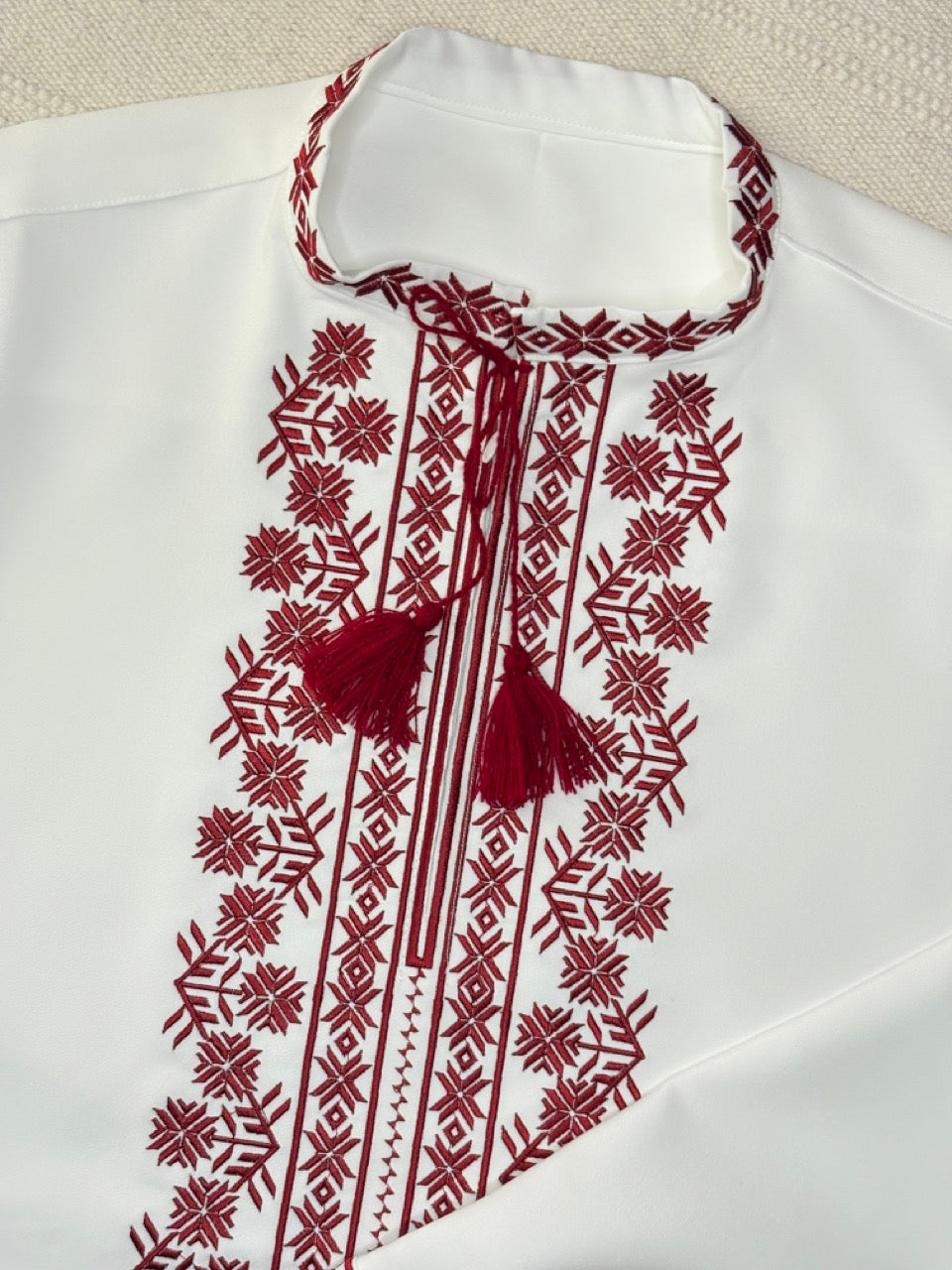 White Men's Vyshyvanka Shirt with Red Embroidery