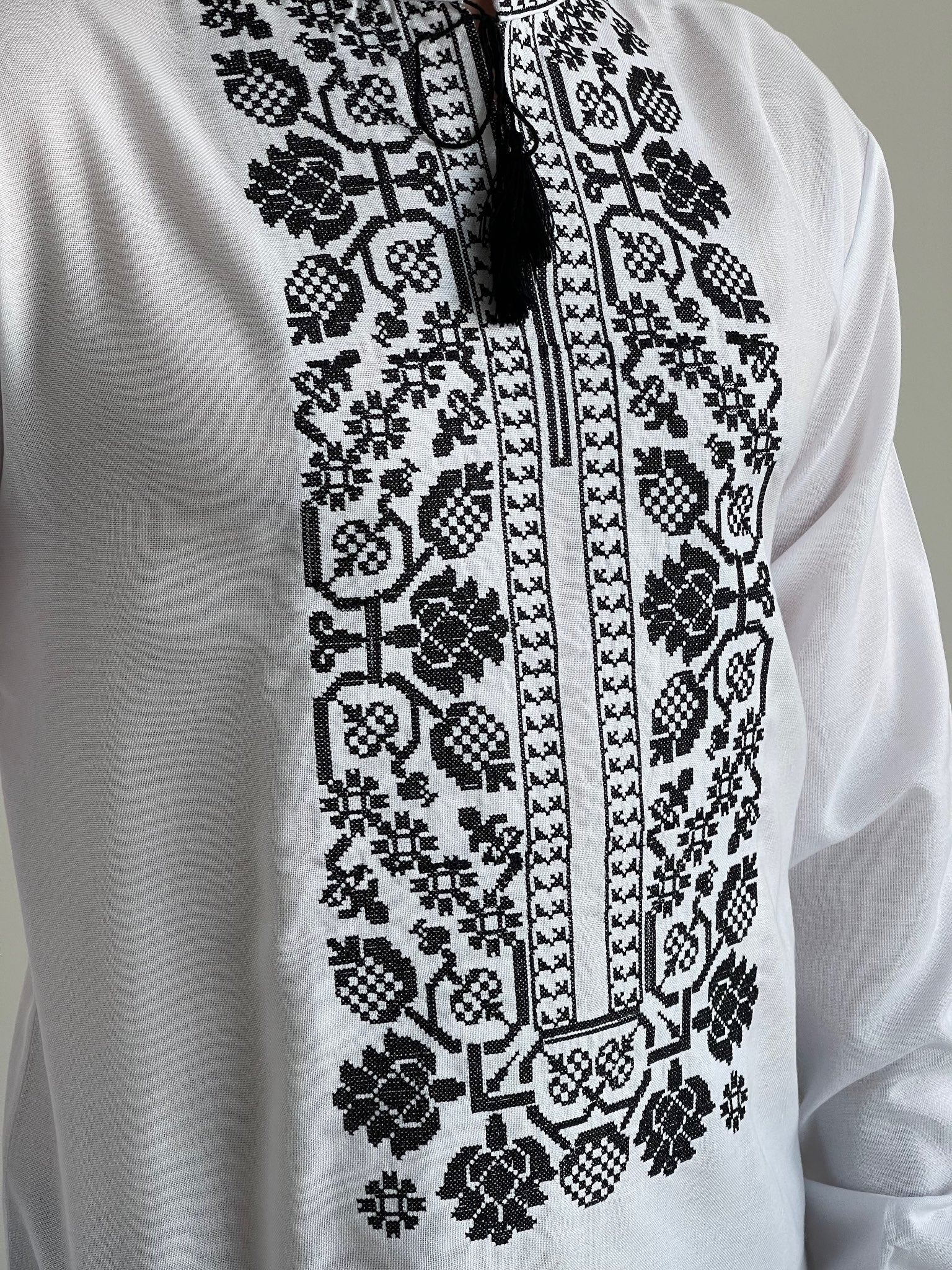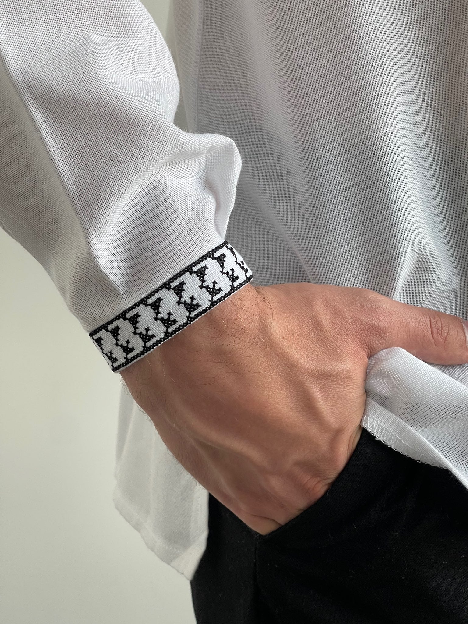 Біла Чоловіча Вишиванка з Довгим Рукавом та Чорною Вишивкою