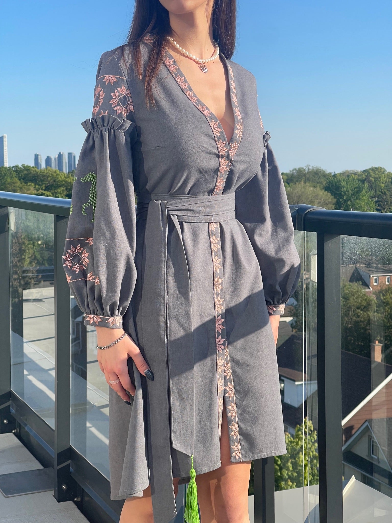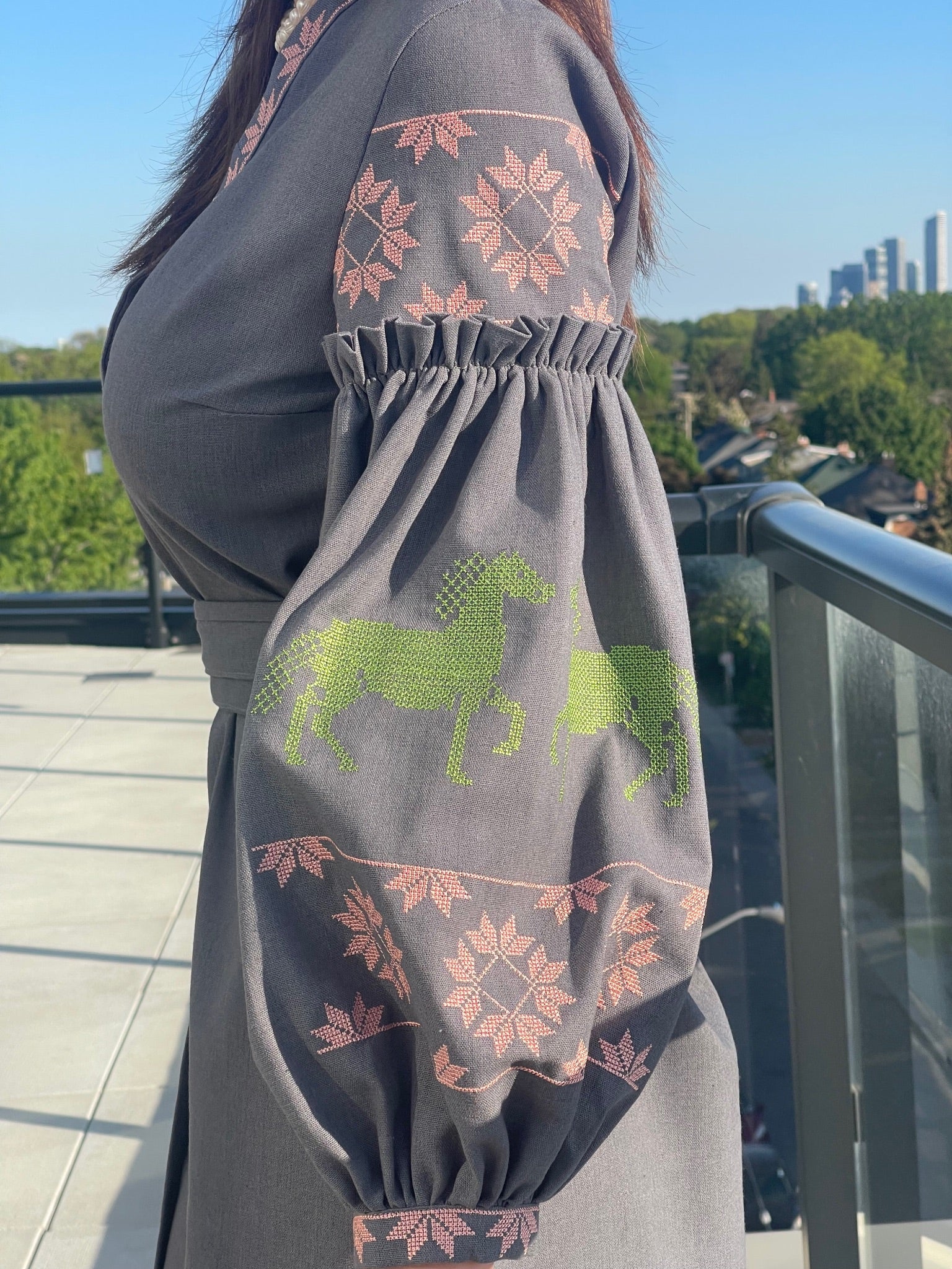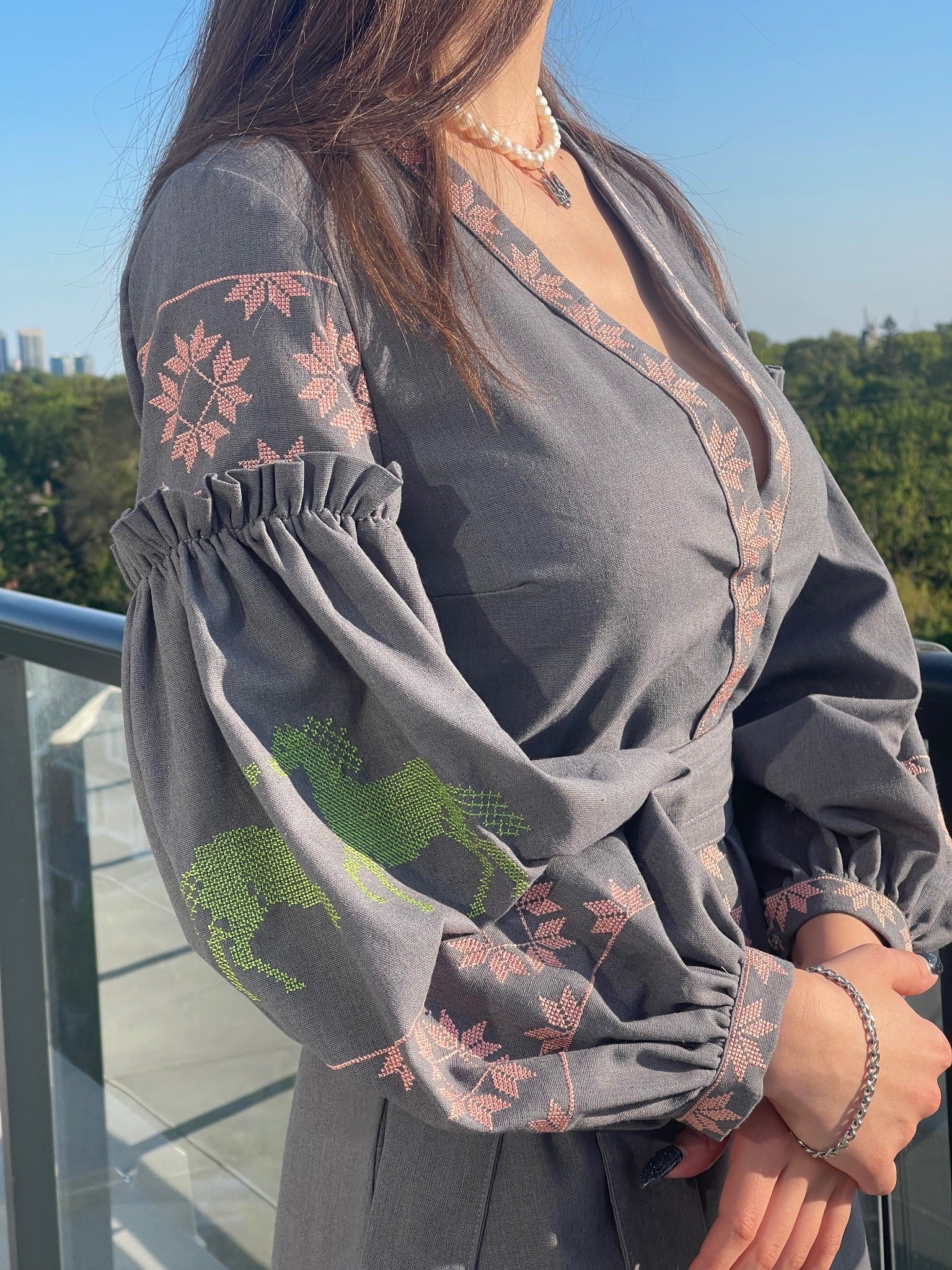 Геометрична вишивка розташована на рукавах.