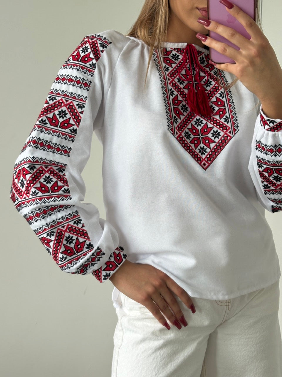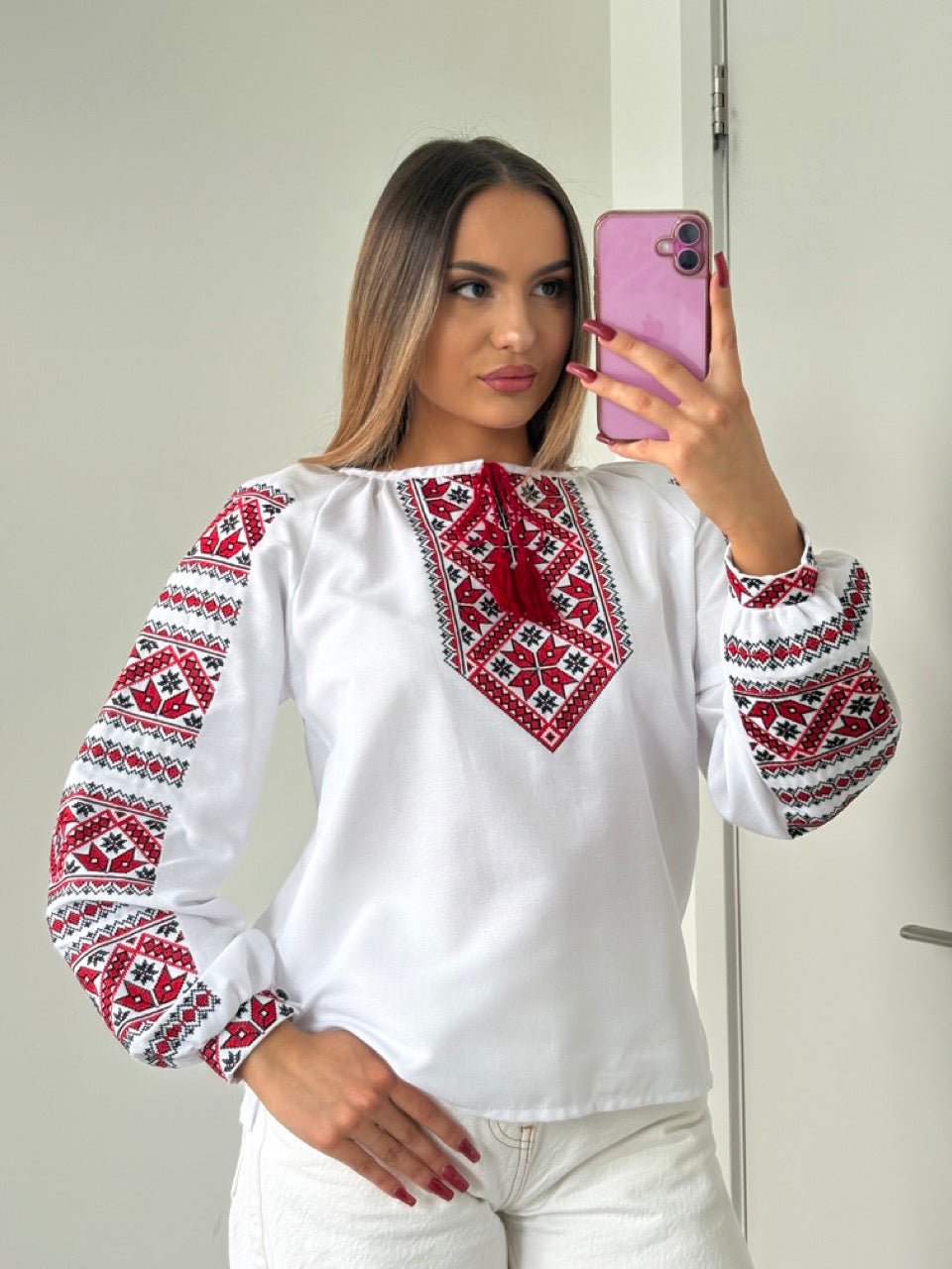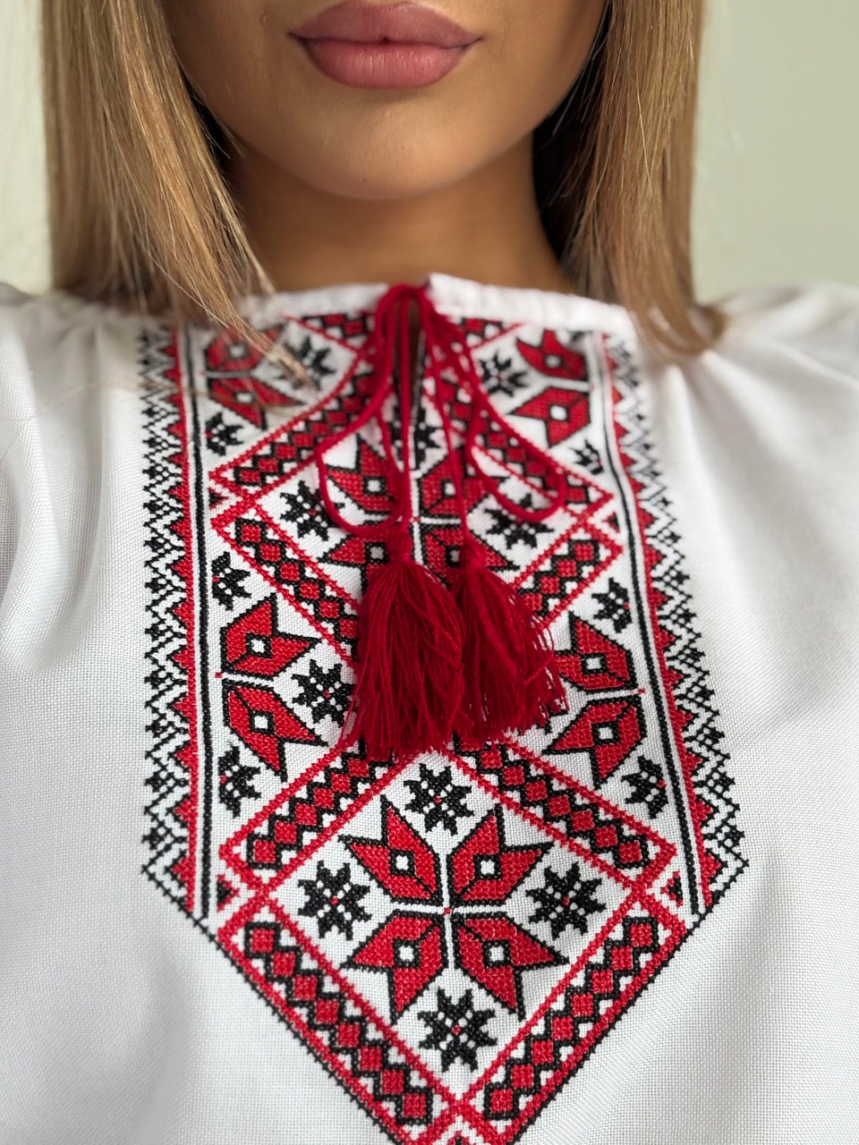 White Vyshyvanka with Bright Traditional Red Embroidery